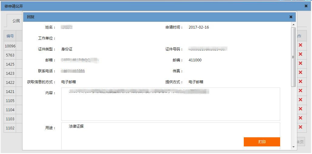 3. 對申請和答復的信息在網(wǎng)站上進行公開顯示